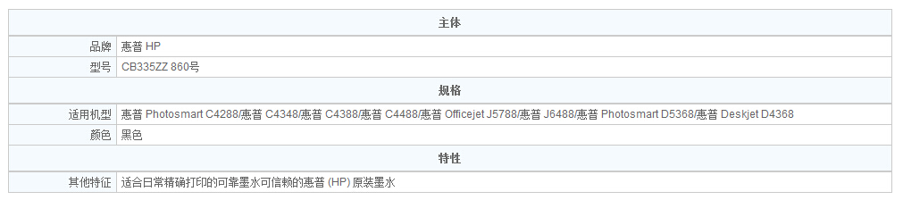惠普(HP)CB335ZZ 860號 黑色墨盒